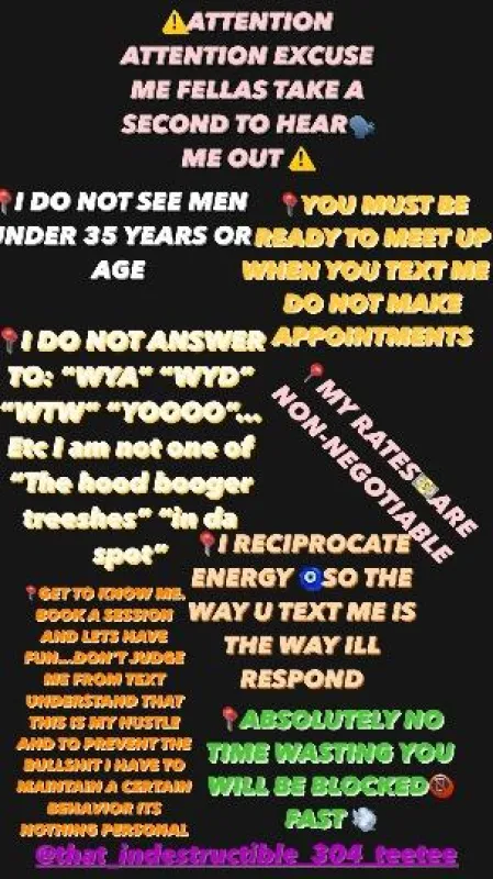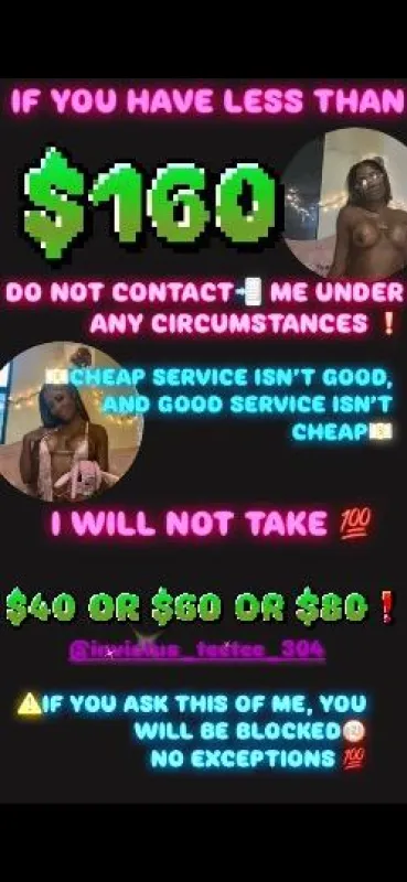 "GREAT🤩 SERVICE ISNT CHEAP💵" AND CHEAP SERVICE, ISN'T ALWAYS CHEAP!💯 QUALITY VS QUANITY💋💃🏾 📌EXCELLENT ETIQUITE🥂 📌PHENOMENAL HYGIENE🧼🚿 📌AND ALWAYS WELL PUT TOGETHER🏆 CONDOMS ARE MANDATORY 🥴 SAFE NASTY SEX 🤤🥳 ⚠ALL RAW INQUIRIES🚯 ⚠ANY PRICE NEGOATIORS💵, ⚠VULGAR/DEROGATORTY TXTS📲 ⚠& ALL NO SHOWS WILL BE BLOCKED📵(immediately) ✅"TO MY GENEROUS GENTELMEN, I CAN'T WAIT TO CATER TO YOU MY KING💦👅🍆" ➖➖➖➖➖➖➖➖➖➖➖ "OUTCALLS"(your place🏘) QV:💲1⃣6⃣0⃣⏰ HHR:💲2⃣0⃣0⃣⏰ HOUR:💲3⃣0⃣0⃣⏰- PLUS UBER OR LYFT ROUND TRIP❗ ⬆↪(NUDE FULL BODY NURU MASSAGE,LAPDANCE or POLE SHOW UpTo 2 POPS) ⚠IF YOU FEEL IM NOT WORTH MY RATES SIMPLY FIND SOMEONE CHEPAER🤣 ITS VERY EASY⚠
